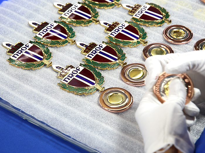 琺瑯徽章,即用琺瑯入色的方法制作的徽章,是最高端的入色工藝,常見于制作軍隊、國家機關(guān)證章及特別有紀念意義、要長久保存的證章、紀念幣、勛章等。合樂工廠37年專注于設(shè)計定制生產(chǎn)真琺瑯徽章,選用天然礦物石琺瑯粉,經(jīng)過高溫?zé)?,形成堅硬不易刺傷且一百年不褪色的真琺瑯徽章。